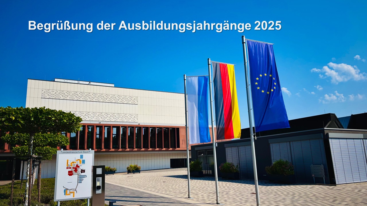 Die Ausbildung der Steuersekretäranwärter/-innen des Finanzamts München findet in den Räumlichkeiten des Landesamts für Finanzen (LfF) statt. Die Begrüßungsveranstaltung am 10. September 2025 konnte in dem repräsentativen Sitzungssaal des Landesamts für Digitalisierung, Breitband und Vermessung auf der gegenüberliegenden Straßenseite stattfinden. In den drei Lehrsälen im LfF werden 55 Auszubildende unterrichtet.